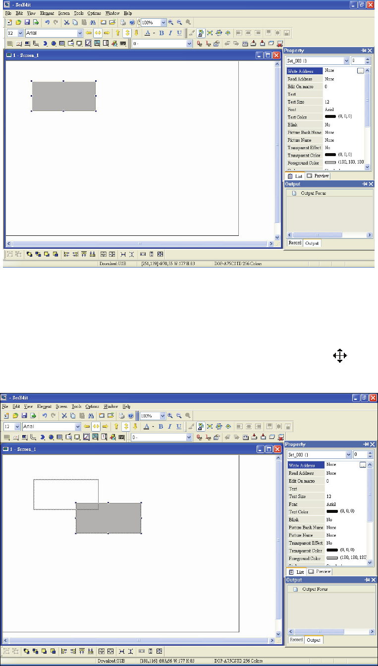 The user can use the mouse to move an element. Mouse operation is the same as working in