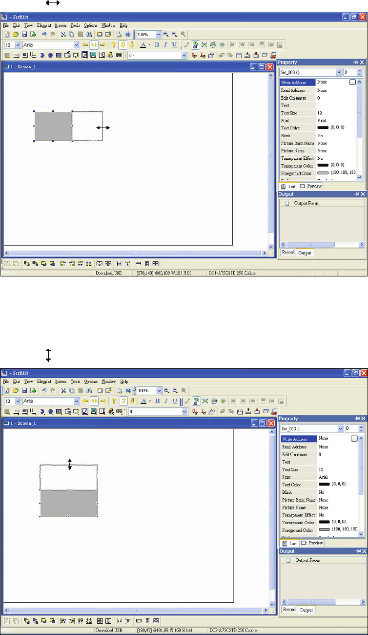 The user can also use the mouse to modify the width of an element. When the mouse cursor changes