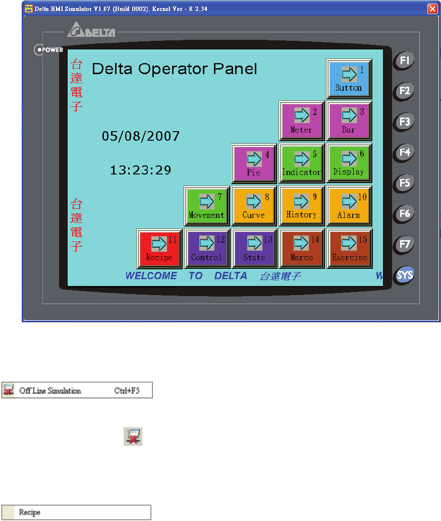 For Off Line Simulation Screen, the user can refer to Fig. 2.8.10.