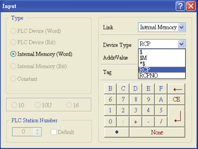 area (RCP0 ~ RCP5). Besides using internal memory address (RCPG and RCPNO), the user also can enter