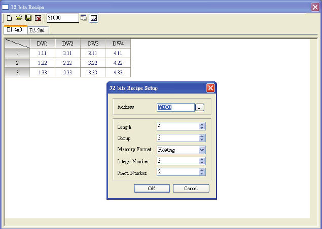 Please click Tools > 32 bits Floating Recipe on menu bar and enter into 32 bits Recipe Setup dialog