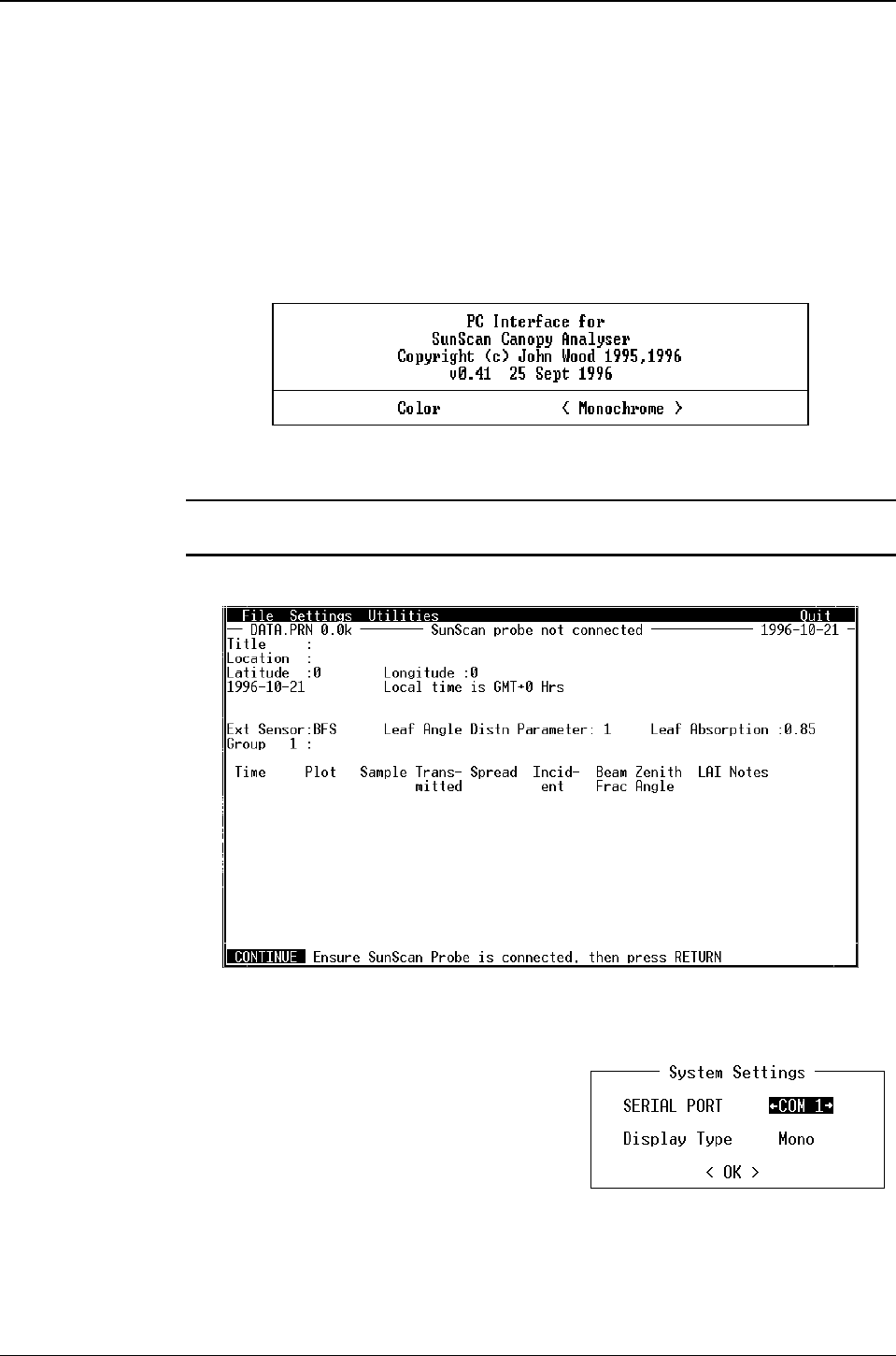 diskette). This will be a quick test just to obtain the opening SunData screens on
