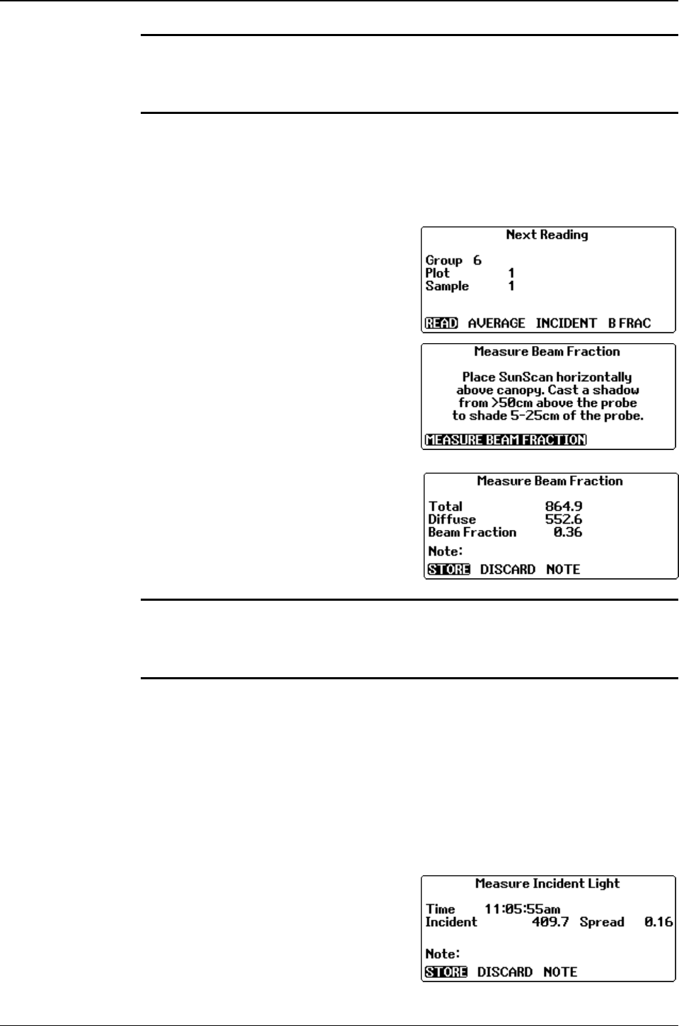 ♦ Press Enter or the red button to STORE the Beam Fraction reading.
