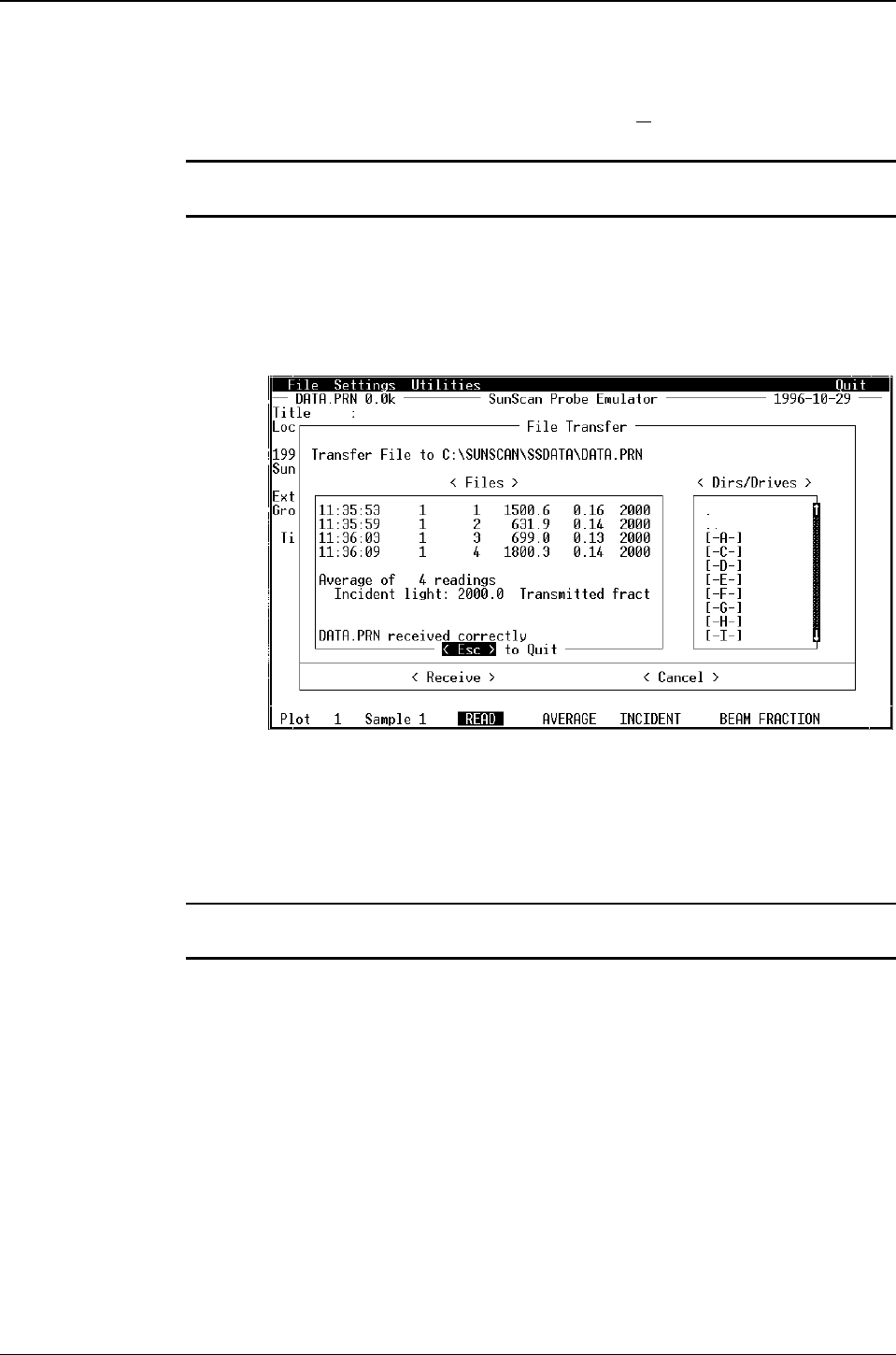 Esc twice to exit the file transfer process, and then exit the SunData