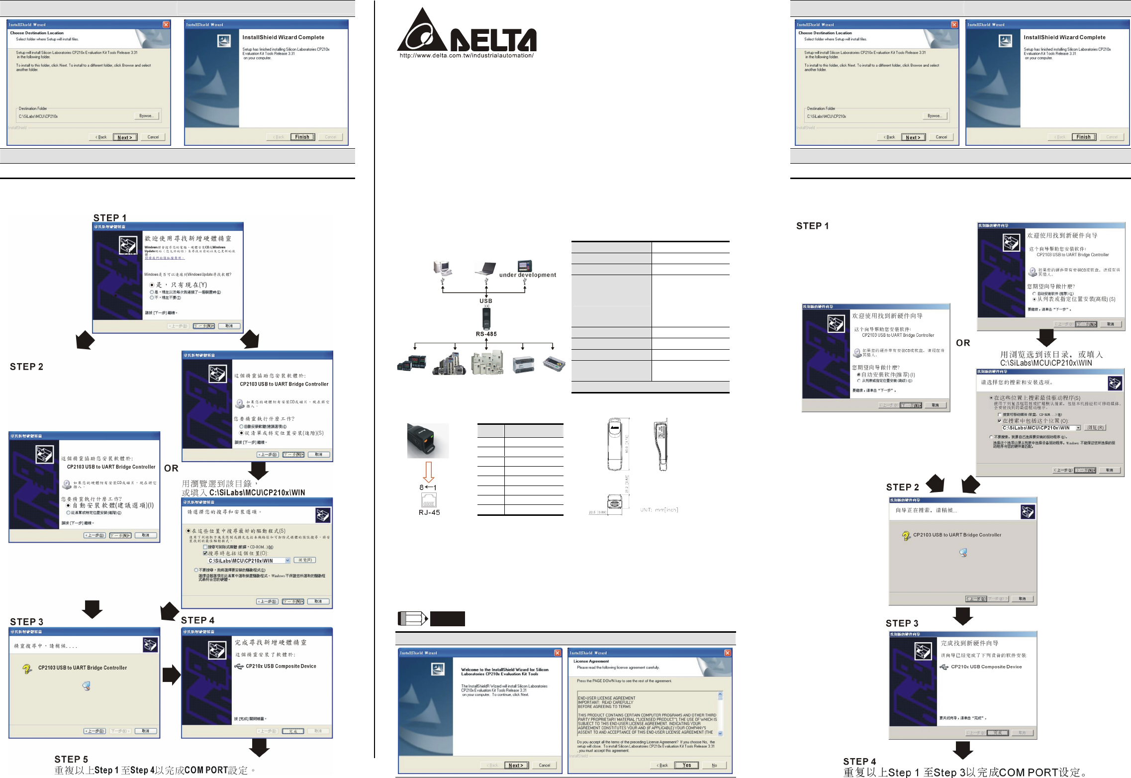 完成後, VFD-USB01 驅動程式將會被放置於 c:\ SiLabs