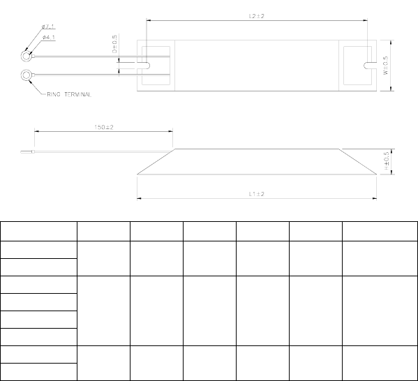 Model no. L1 L2 H D W Max. Weight (g)