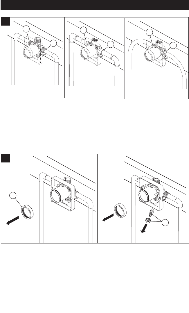 (cuivre, fer ou Pex). Note : (1) correspond à