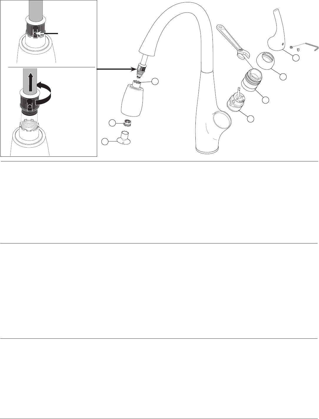 AGUA. Cambie el cartucho de la válvula (7). sando una