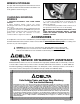 2. Align the holes in the eye shield with the holes in the spark guard and place the eye shield spacer (A) Fig. 7, in the space in the spark guard as shown. A Fig. 7 D C 3. Insert the eye shield bolt (A) Fig. 8, through the hole in the eye shield (B), eye shield spacer (C), and spark guard (D). E F A 4. Place a 1/4" flat washer (E) Fig. 8, onto the end of the eye shield bolt and fasten the eye shield knob (F) to the end of the eye shield bolt. B 5. Assemble the other eye shield in the same manner.