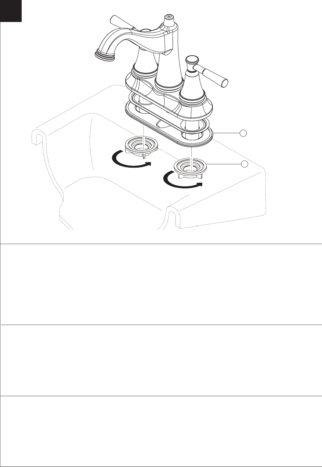 Opción: Si el lavamanos está desnivelado, utilice silicóndebajo del empaque (1).