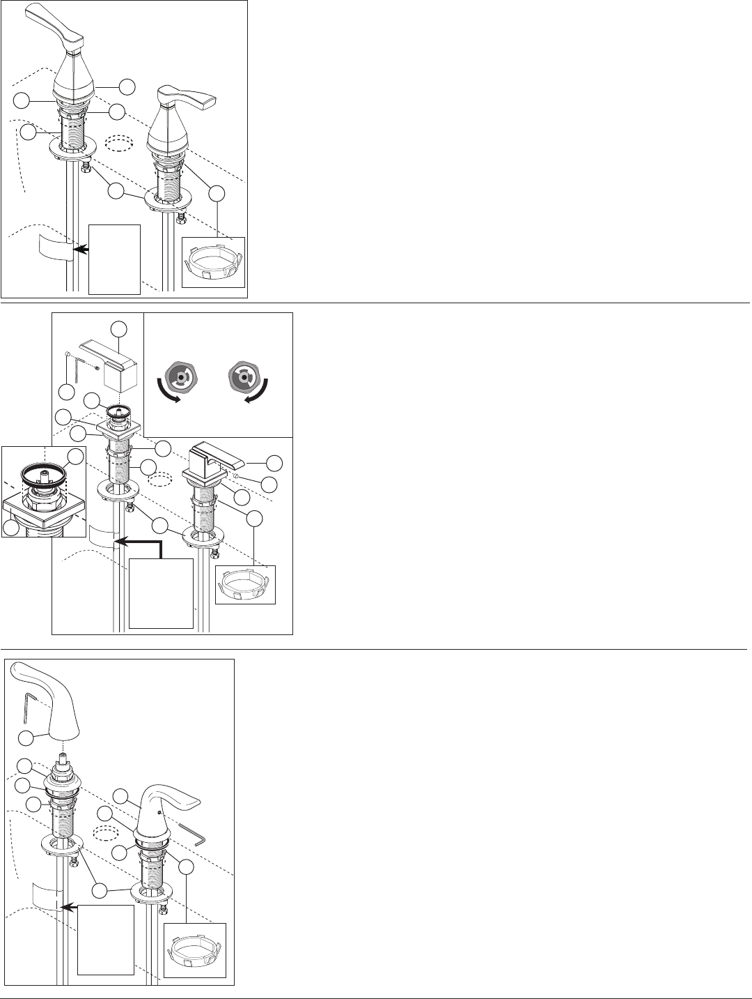 sink. Note: Valve with hot label should be installed in the left hole for proper handle rotation.