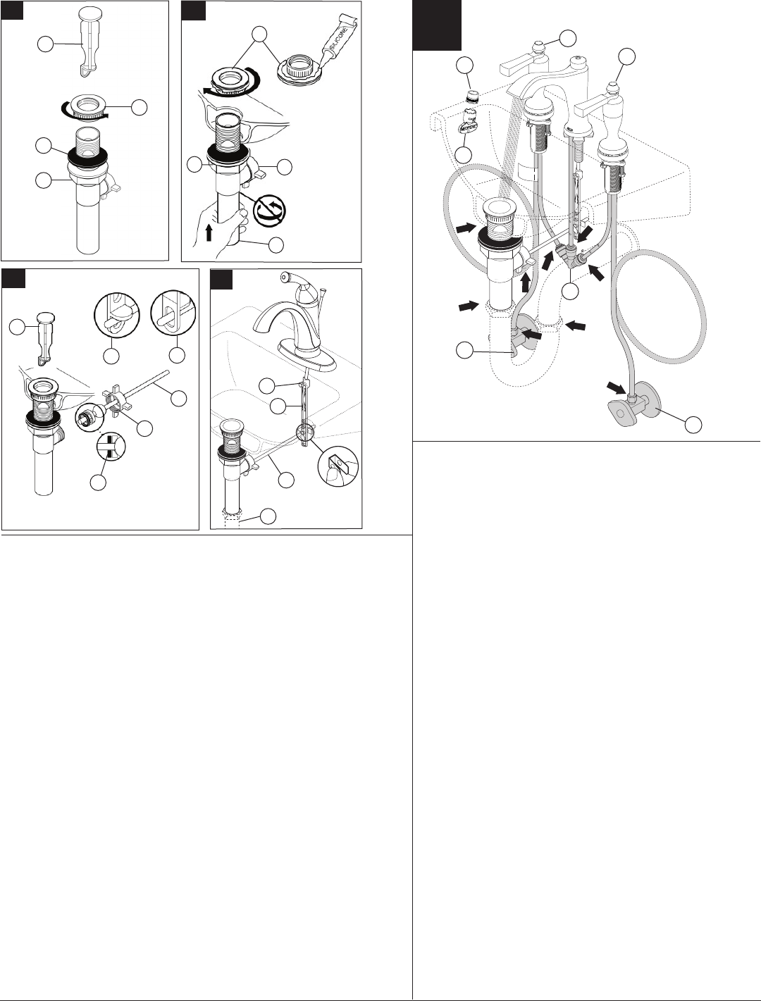 la parte posterior del lavamanos. Hale el ensamble hacia abajo firmemente y sostenga