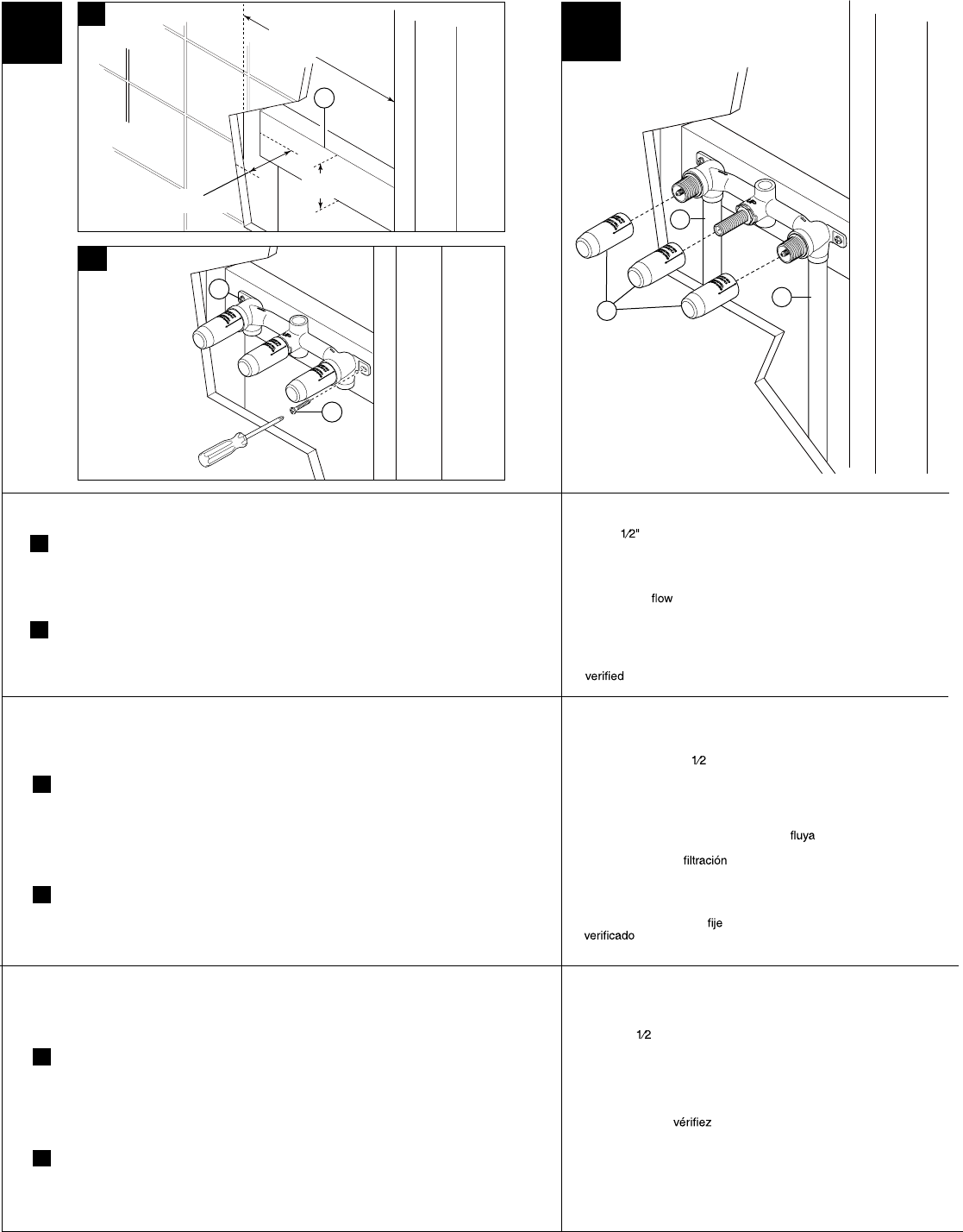 Attach the valve body to the stud brace with suitable screws (1). The valve body is designed
