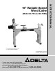 FUNCTIONAL DESCRIPTION FOREWORD The Delta 46-756 16” adjustable speed wood lathes is a big capacity machine, designed for industry, commercial shops, and schools, or wherever a demand exists for continued accuracy and long life through safe, heavy-duty operation. UNPACKING AND CLEANING Carefully unpack the tool and all loose items from the shipping container(s).