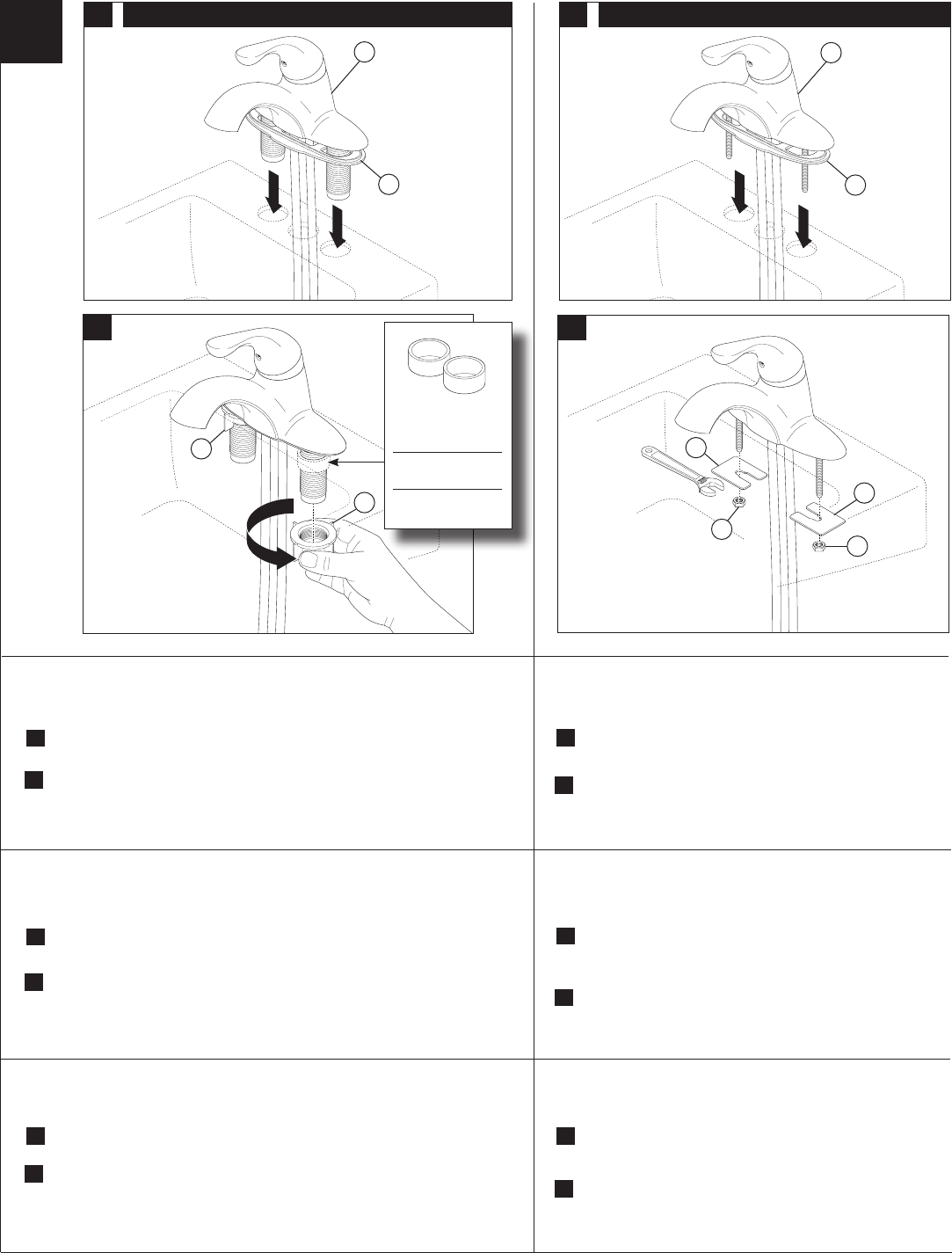 Positionfaucet(1)andgasket(2)onsink.Option: If sink is uneven, use