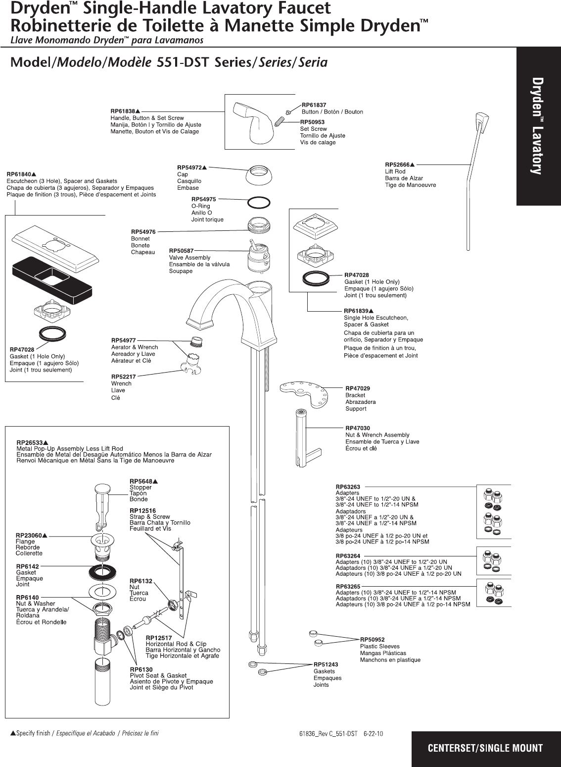 Dryden Single Hole 1-Handle Bathroom Faucet in Stainless