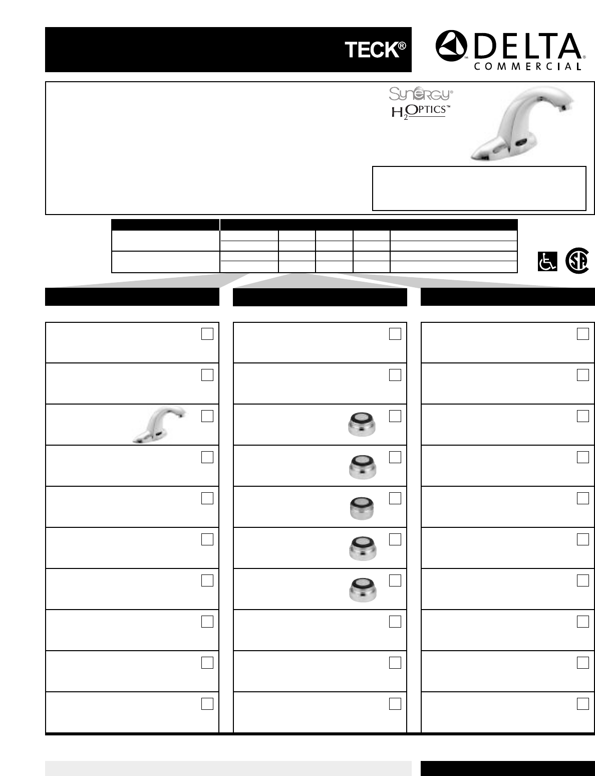 Refer to www.specselect.com for individual models. Note: Use this page front and back, with specification drawing page referenced above, as product submittal sheets.