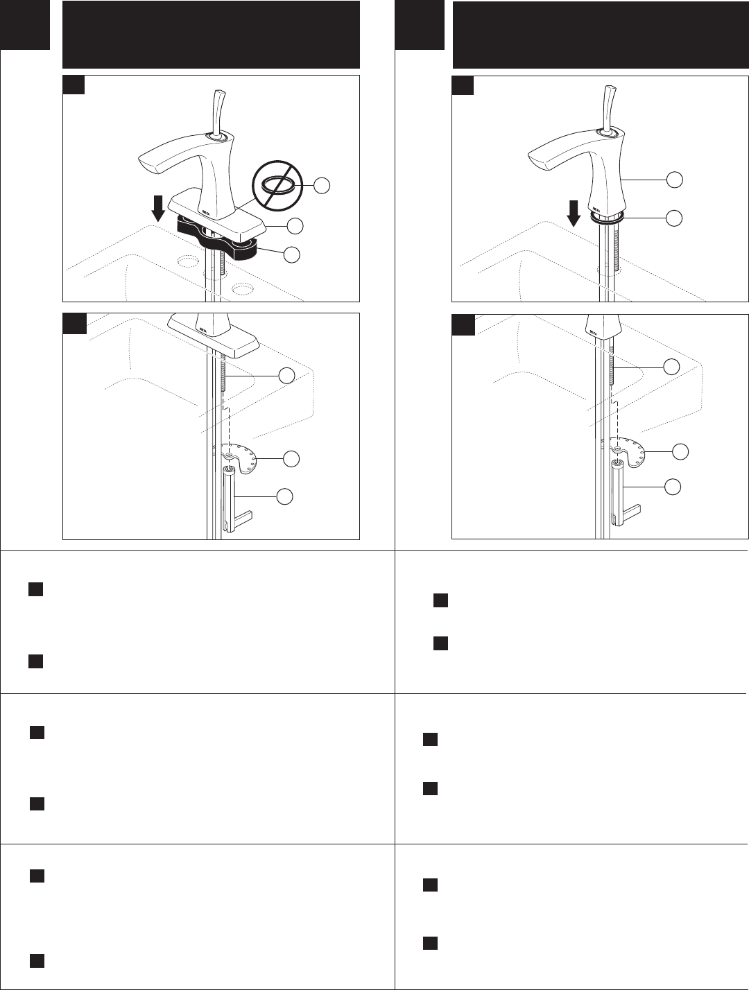 stud. Position faucet (2) and gasket on sink. Option: If sink