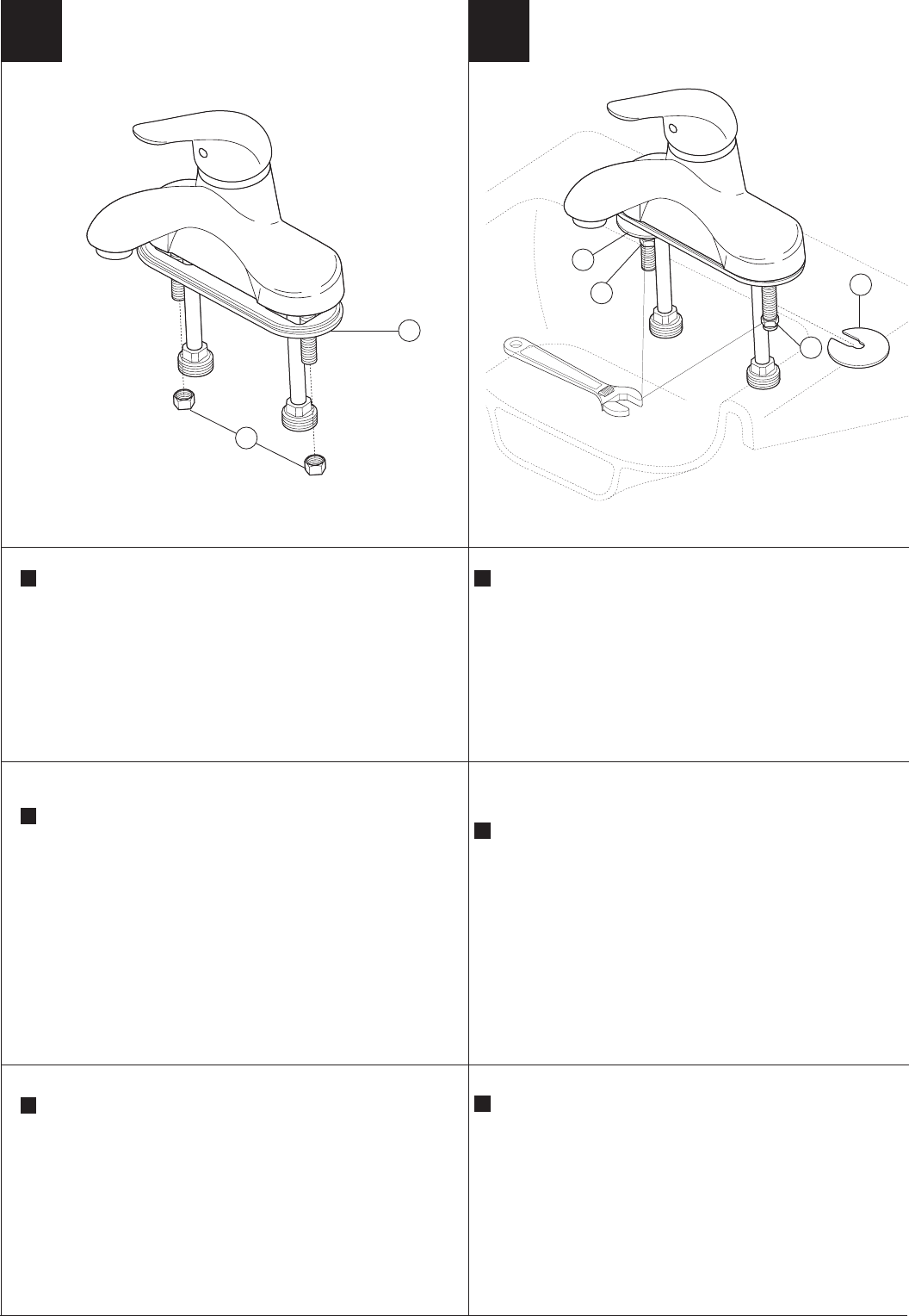 with slotted openings around tubes. Secure faucet to sink by