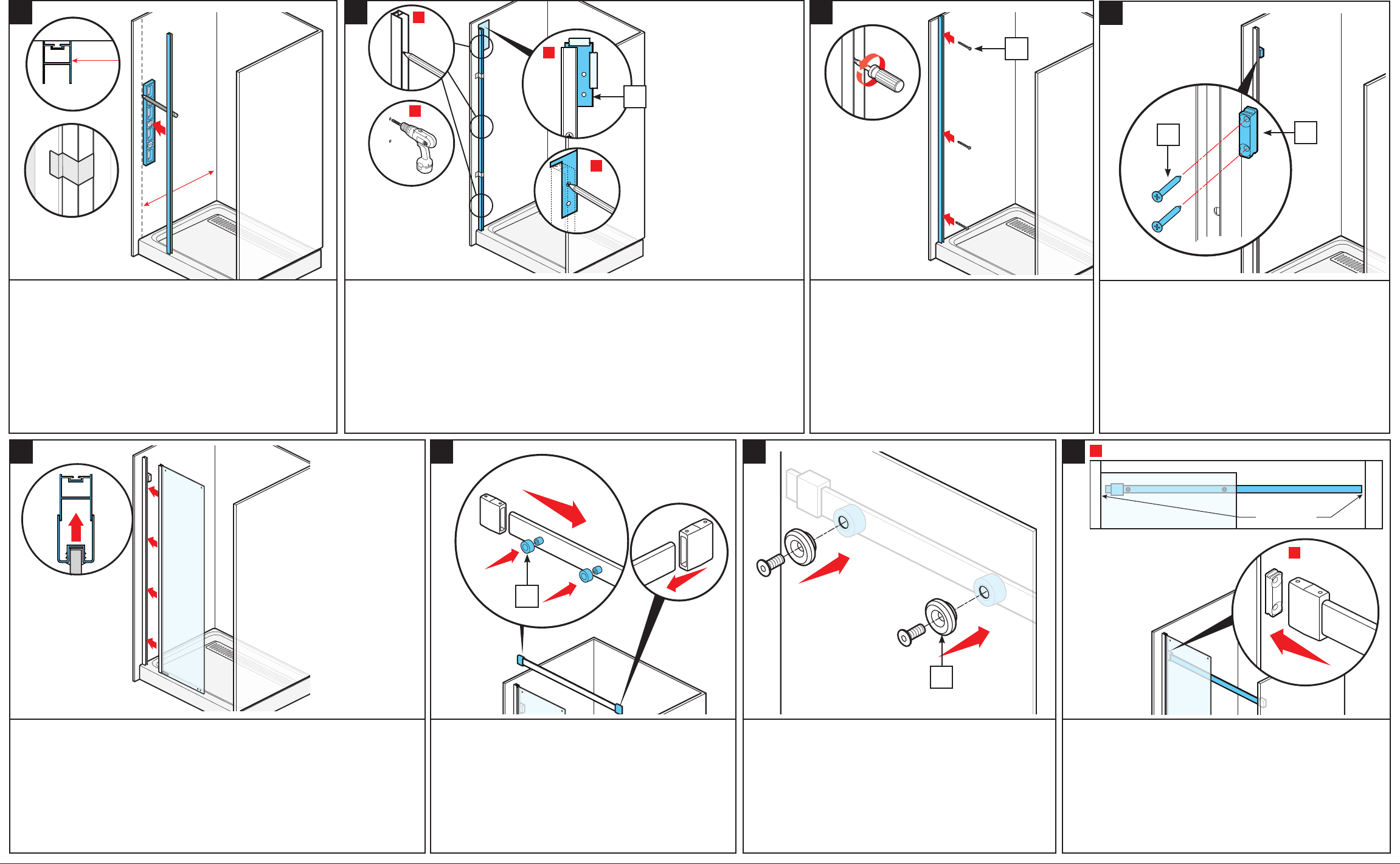 Insert the front glass panel over the wall jamb.