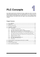 PLC Concepts This chapter introduces basic and advanced concepts of ladder logic, which is the mostly adopted programming language of PLC. Users familiar with the PLC concepts can move to the next chapter for further programming concepts. However, for users not familiar with the operating principles of PLC, please refer to this chapter to get a full understanding of PLC concepts. Chapter Contents 1.1 PLC Scan Method ..........................................................................................