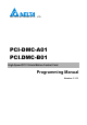 PCI-DMC-A01 / PCI-DMC-B01 Programming Manual About this Manual User Information Please keep this manual in a safe place. This manual is subject to change without notice due to the release of new products, improvements and changes in technologies, and/or modifications to data and forms. This manual may not be copied or reproduced in whole or in part without the express written consent of Delta Electronics.