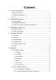 Content 1.Product Introduction ......................................................................... 1 1.1 Brief introduction ........................................................................................ 1 1.2 Product specifications ................................................................................ 1 1.3 I/O ................................................................................................................. 3 2.Application planning .................................