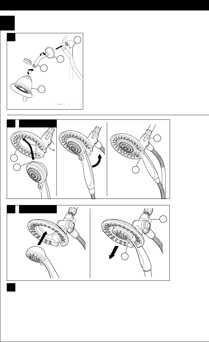 58065: Pour combiner les deux douches, poussez la douche à main dans la pomme de douche,