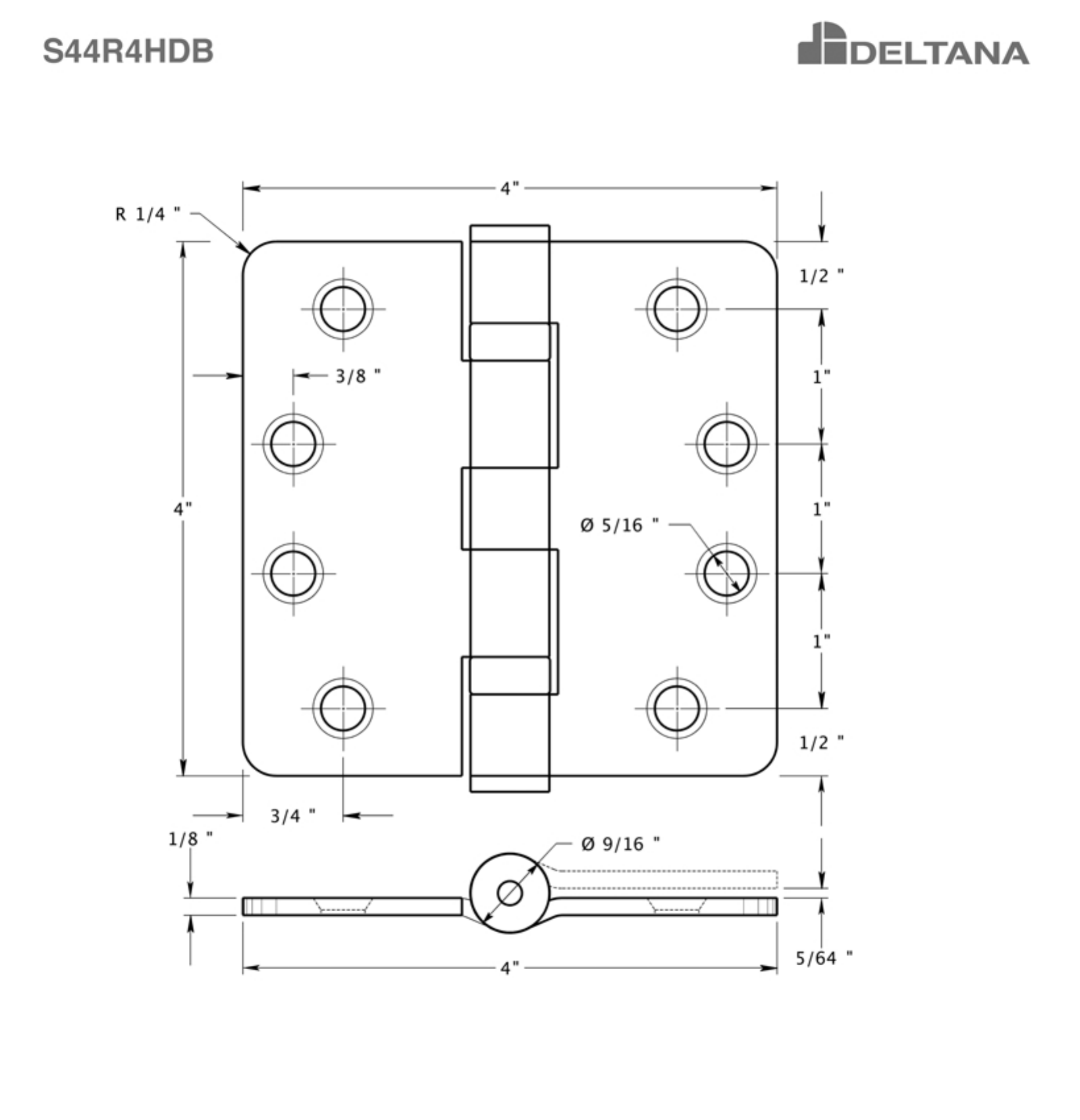 4" x 4" Plain Bearing 1/4" Radius Corners Mortise Hinge - Pair