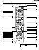 FRANCAIS Unité de télécommande • Pour les détails sur les fonctions de ces pièces, se reporter aux pages données entre parenthèses ( ). LED (Indicateur) ...........................(69, 72) Emetteur de signaux de télécommande ..............................(62) Touches POWER ...................(64, 69~73) Touches d’ambiance ..............(75, 80, 85) Sélecteurs de source d’entrée .................................(69~72, 74) Système tuner/ touches Système...................