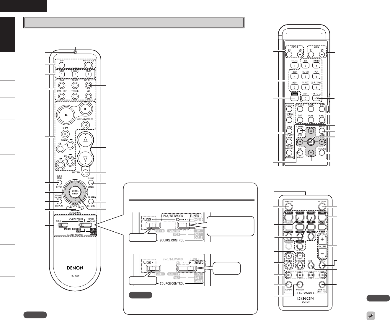 SOURCE CONTROL switch settings and