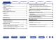 Contenido Conexiones Reproducción Pantalla Panel trasero Consejos Apéndice Consejos 182 182 182 183 185 186 187 187 188 189 189 189 191 192 192 192 193 194 195 197 Red Información Conexión Config. Wi-Fi Ajustes Control de IP Designación Diagnóstico Modo Servio General Idioma ECO Config.ZONE2 Renombrar Zona Selec.ráp.nom. Display Frontal Información Datos de uso Firmware Bloquear config.