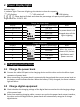 2 Power display light: Indicator light: 1. Indicator light: There are 4 lights on the device to show the capacity. “ ” LED flashing “ ” LED switch off “ ” LED lighting Power bank will check and show the percentage of capacity when power on.