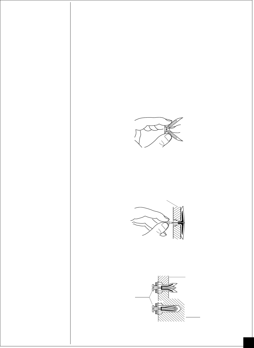 3. Insert wall anchor (wings first) into hole. Tap anchor flush to wall.