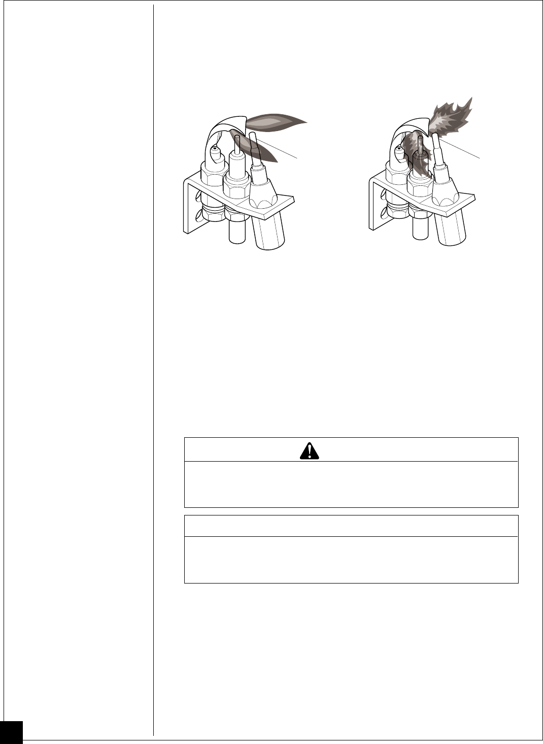 flame pattern. The incorrect pilot flame is not touching the thermocouple. This will