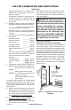 AIR FOR COMBUSTION AND VENTILATION Continued Example: Space size 20 ft. (length) x 16 ft. (width) x 8 ft. (ceiling height) = 2,560 cu. ft. (volume of space) If additional ventilation to adjoining room is supplied with grills or openings, add the volume of these rooms to the total volume of the space. 2. Multiply the space volume by 20 to determine the maximum Btu/Hr the space can support. _ ________ (volume of space) x 20 = (Maximum Btu/Hr the space can support) Example: 2,560 cu. ft.