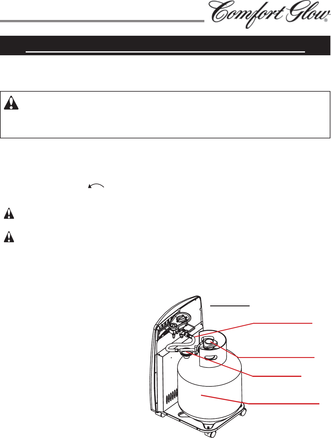 3. Branchez le régulateur/tuyau à l’orice de sortie de la bouteille. Tournez l’assemblage dans le sens inverse