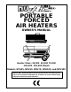 PORTABLE FORCED AIR HEATERS OWNER’S MANUAL Heater Sizes: 35,000 50,000 70,000 100,000 150,000 Btu/Hr Models: NTH35, NTH50, NTH70, NTH100, and NTH150 IMPORTANT: Read and understand this manual before assembling, starting or servicing heater. Improper use of heater can cause serious injury. Keep this manual for future reference.