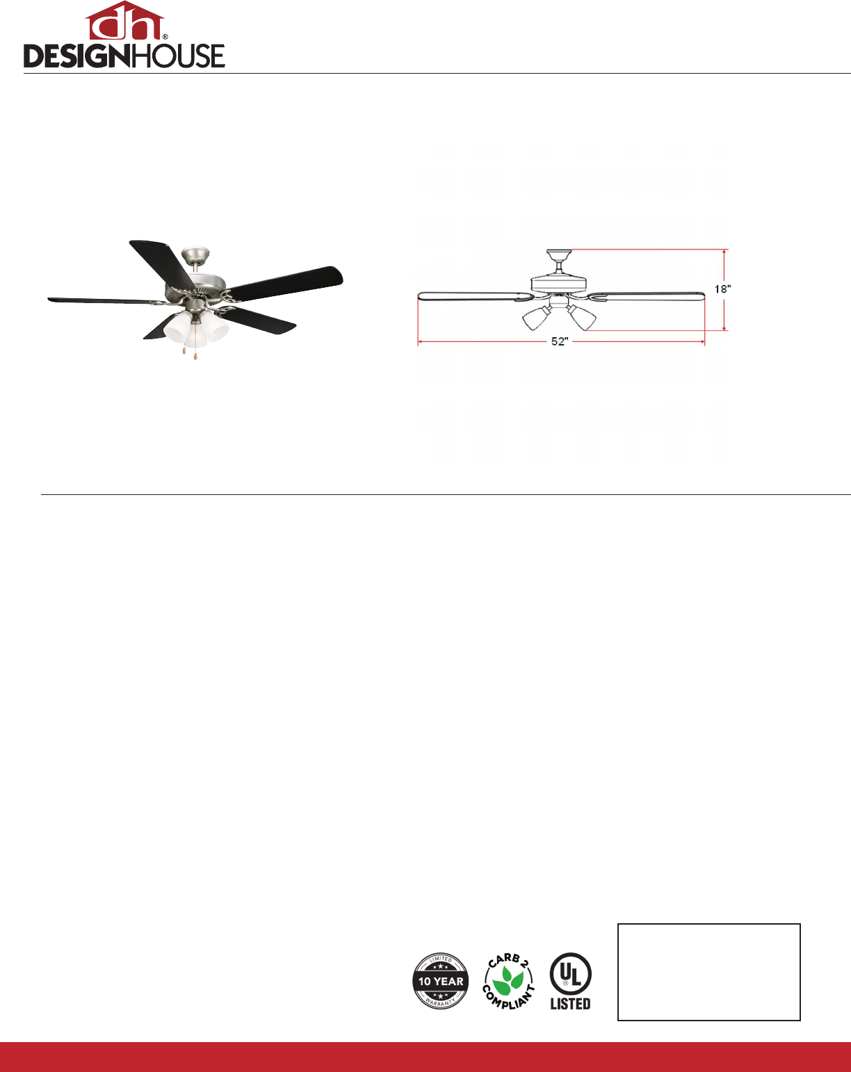 Design House reserves the right to make changes in materials, specications & models at any time. Design House also reserves the right to discontinue product without notice or obligation.