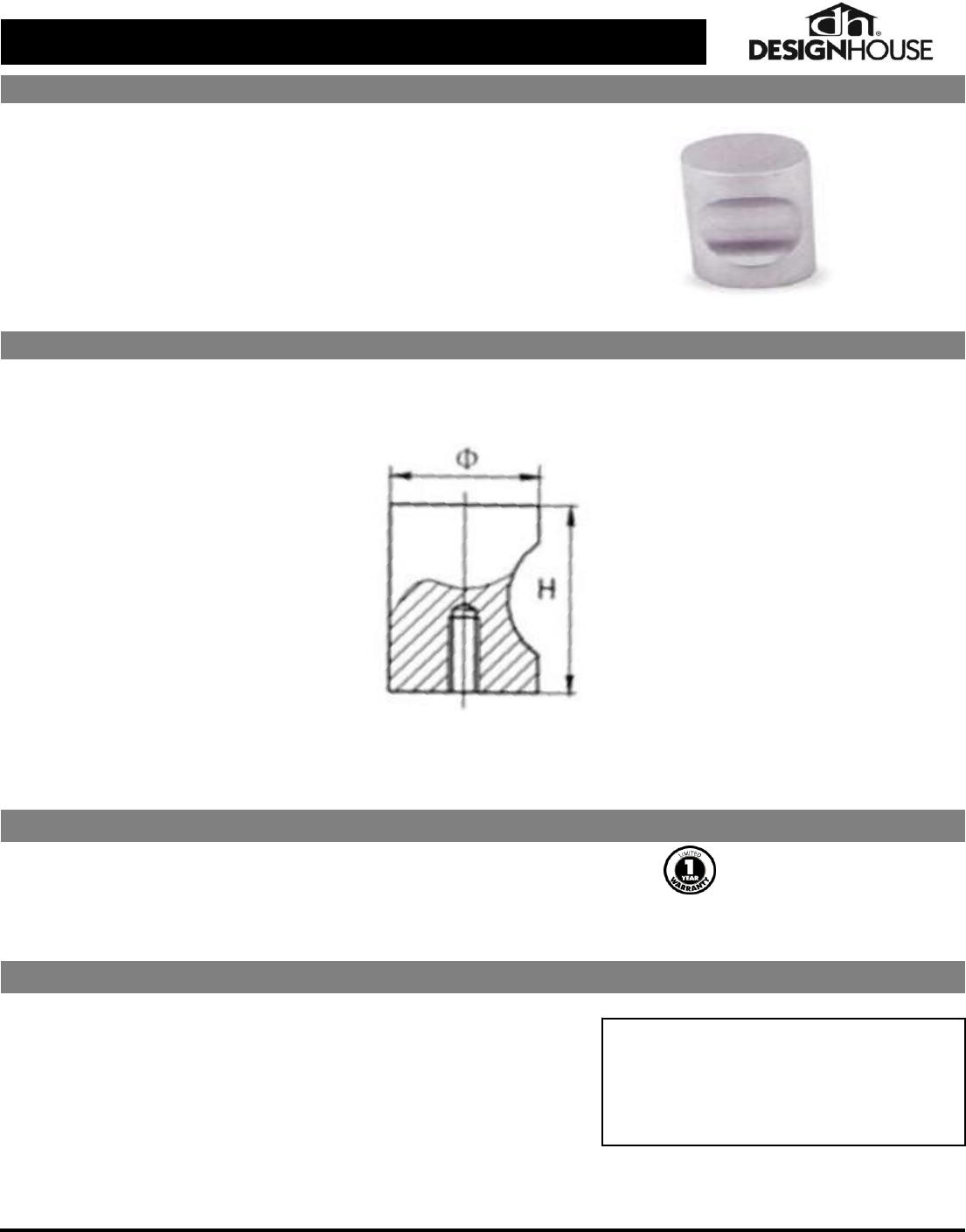 Design House reserves the right to make changes in materials, specifications & models at any time. Design House also reserves the right to discontinue product without notice or obligation.