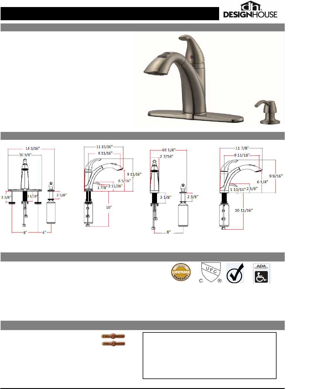 Design House reserves the right to make changes in materials, specifications & models at any time. Design House also reserves the right to discontinue product without notice or obligation.