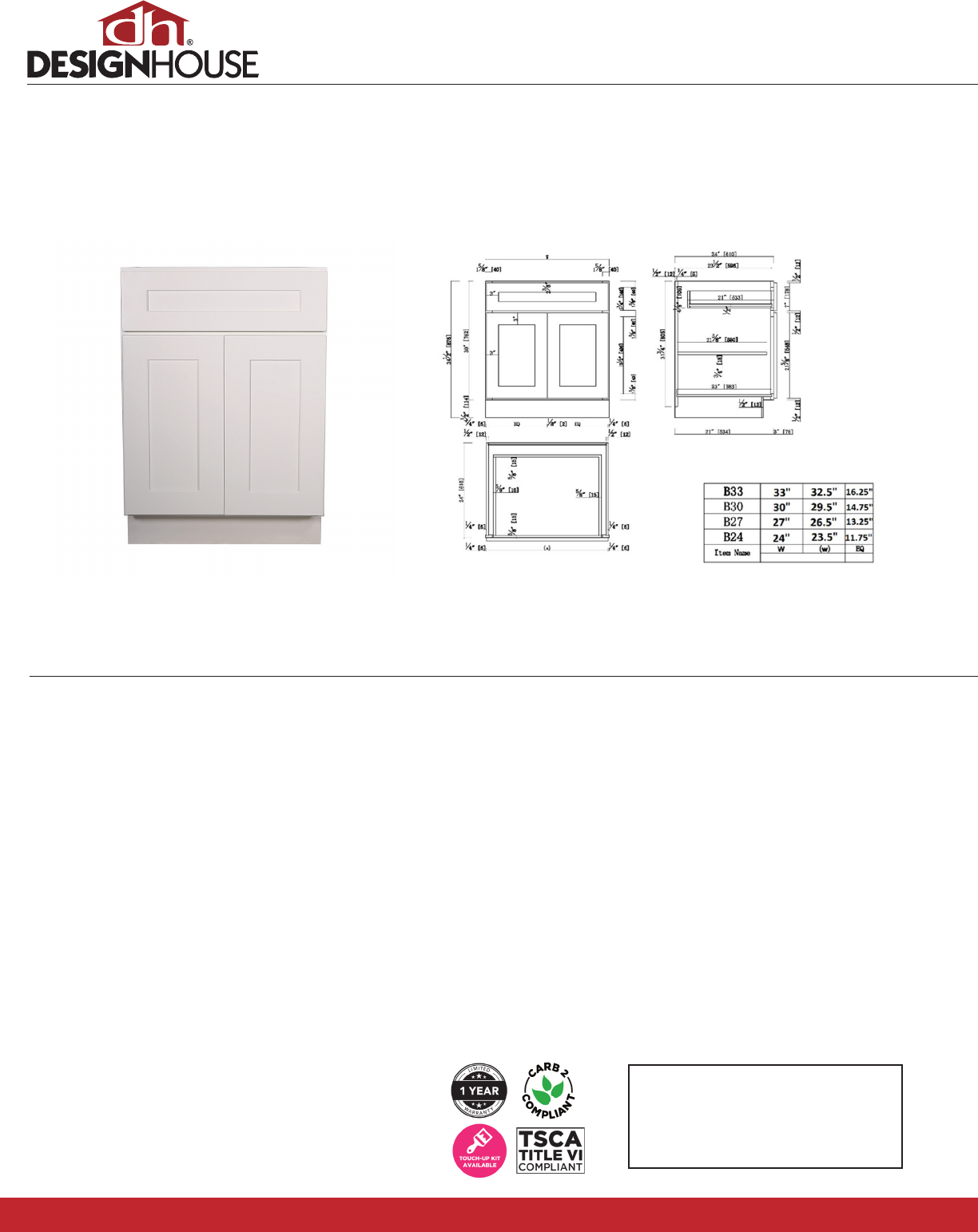 Design House reserves the right to make changes in materials, specications & models at any time. Design House also reserves the right to discontinue product without notice or obligation.
