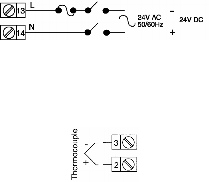 (anti-surge type T) fuse. With the 24V AC/DC supply option fitted, these terminals will