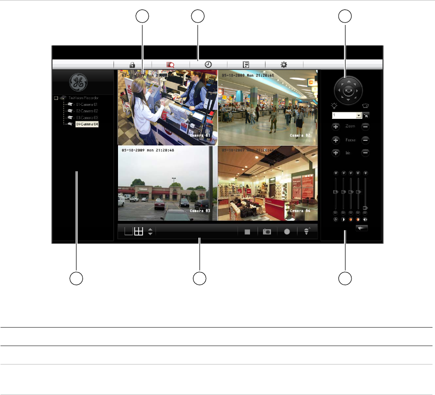 2 Navigation bar Logs you out of the interface. Accesses live or playback video.