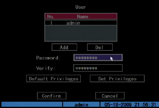 users. When creating a new user, the default password is 0000. Each standard user