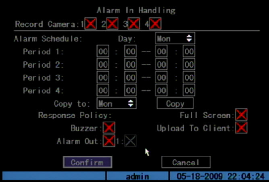 In the Alarm Schedule section of the Alarm In Handling screen, define a schedule