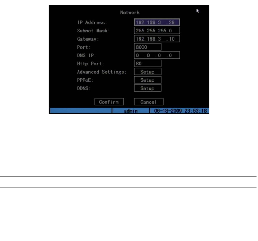 Table 19 below describes the Network screen options.