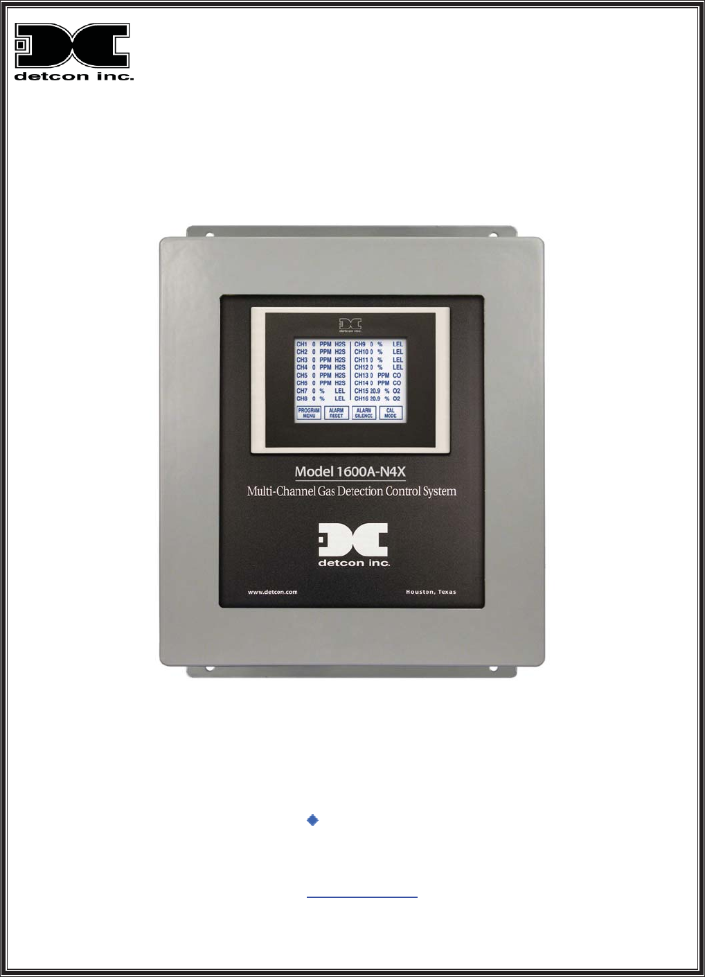 1600A-N4X Page intentionally blank Shipping Address: 3200 A-1 Research Forest Dr., The Woodlands Texas 77381 Mailing Address: P.O. Box 8067, The Woodlands Texas 77387-8067 Phone: 888.367.4286, 281.367.4100 • Fax: 281.292.2860 • www.detcon.
