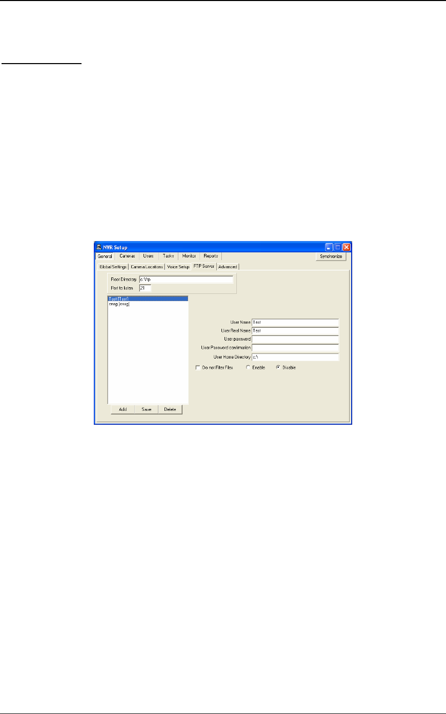 FTP-client settings must be setup inside the cameras in conjunction with FTP Server settings.