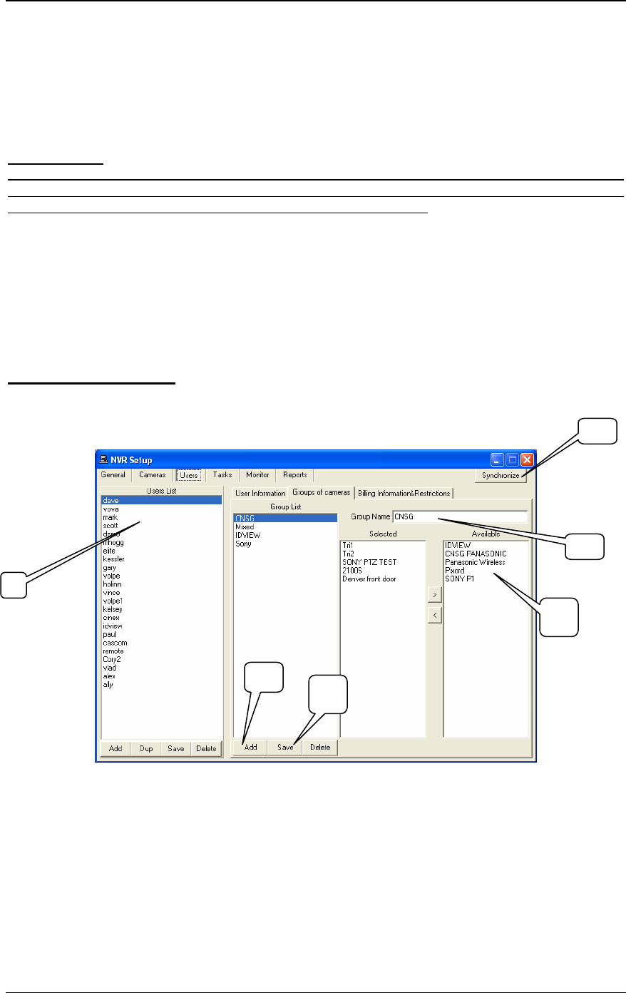 Fig. 19. NVR Setup→Users→Groups of cameras